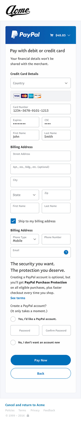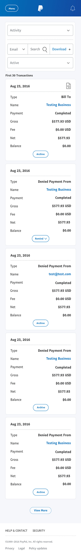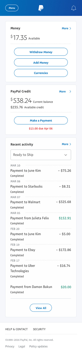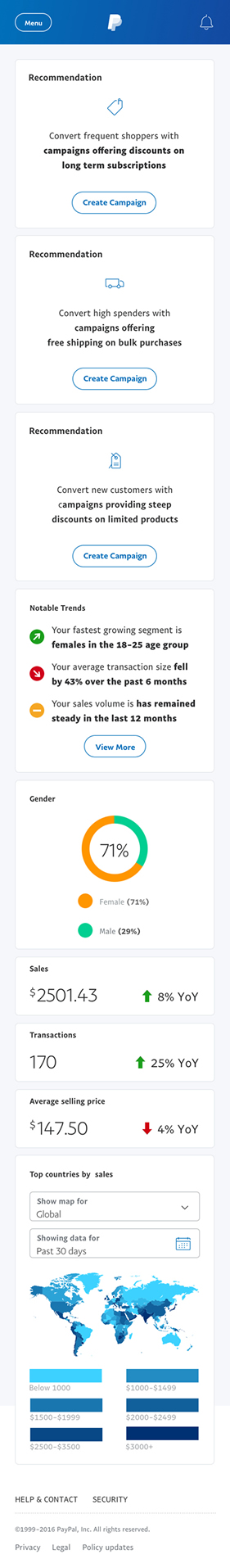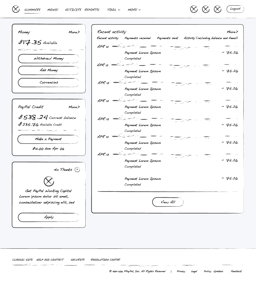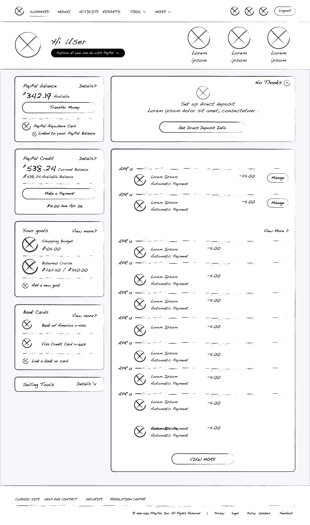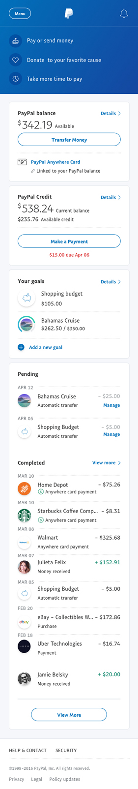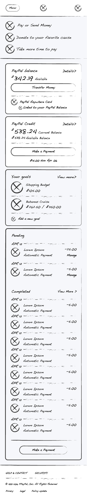 Project Directive: Redesign the PayPal foundational pages for both mobile and web platforms with a unified tiled apppearence.